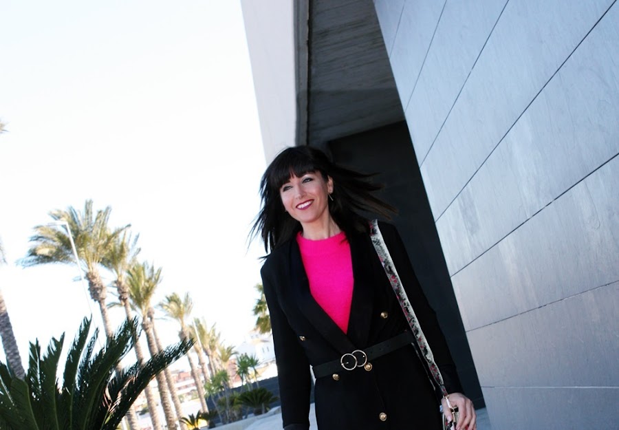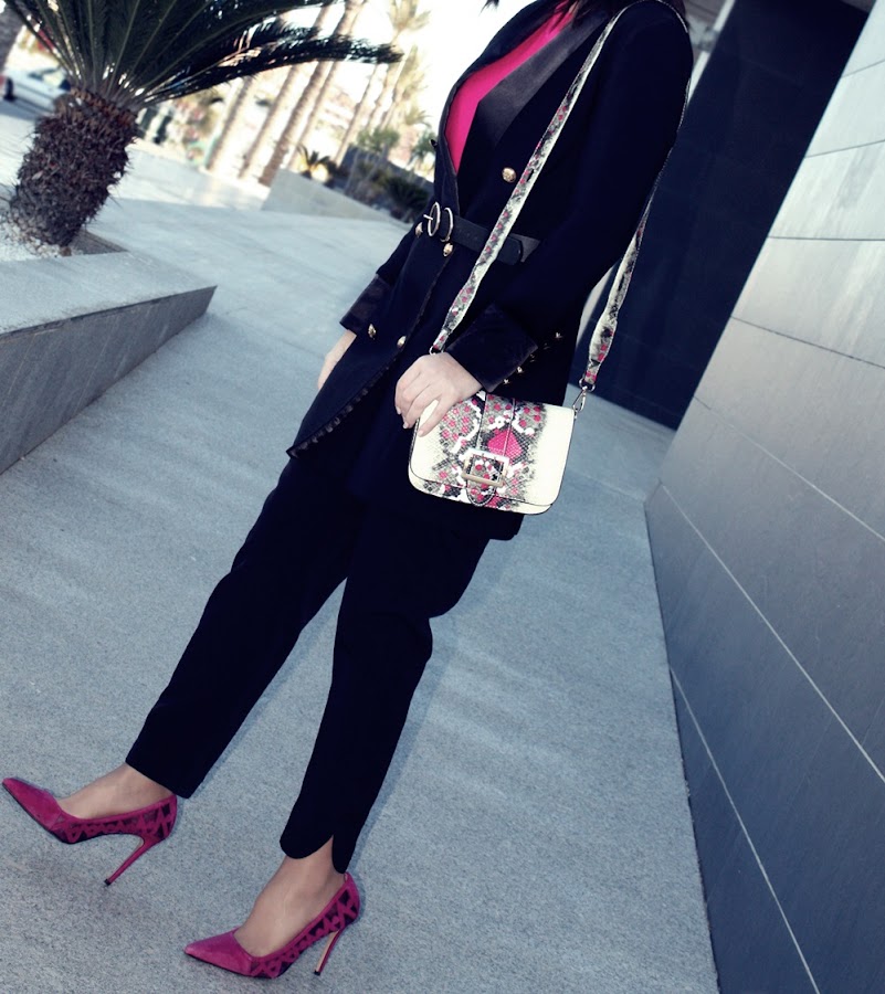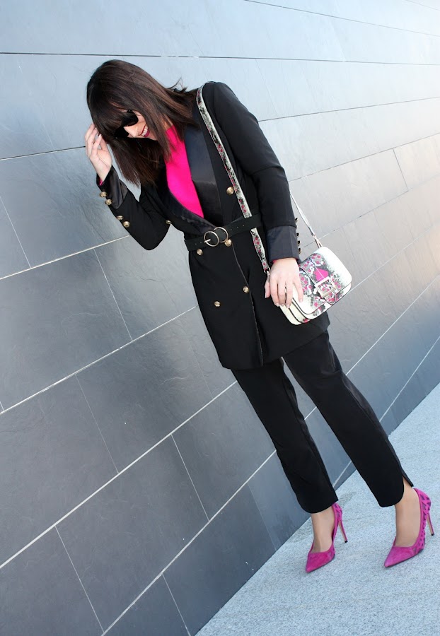 Una sencilla fórmula para combinar estos colores tan magnéticos es combinarlos en un total black como en mi propuesta de hoy.