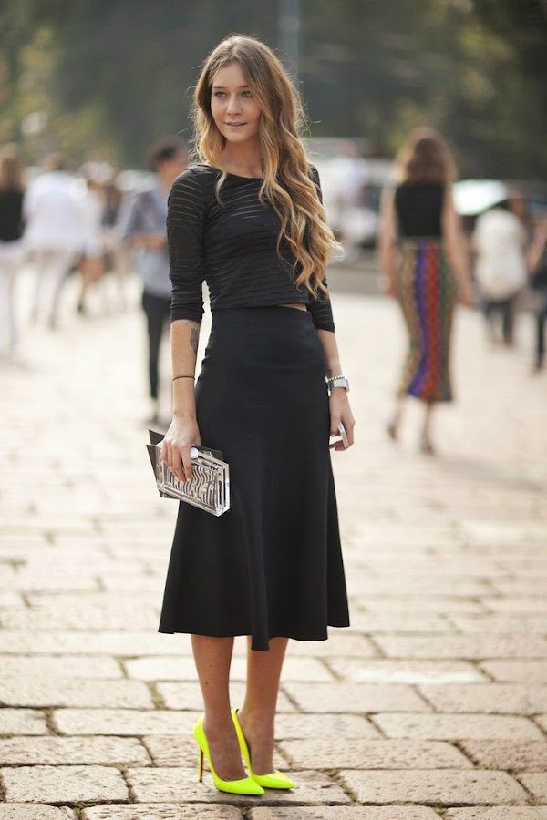 En Zara es, posiblemente, donde más variedad hemos visto en tonos neón. Hay vestidos, pantalones, partes de arriba, accesorios y zapatos. Puedes combinarlos entre sí, de hecho así es como conseguirás un look más cool. Si no te atreves a llamar tanto la atención, prueba a comenzar utilizándolos en una pieza del look, por ejemplo: el bolso, el vestido, o los zapatos en estos tonos. De esta manera jugarás al contraste y tu look será más fresco.