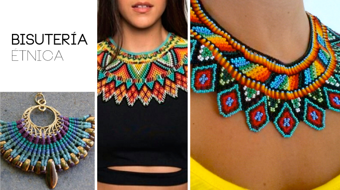 - La bisutería étnica. Este tipo de accesorios nos encantan. Tienen una connotación cultural profunda y utiliza una variedad de insumos de una manera muy orgánica y original. Sin duda una tendencia que crea atuendos llenos de vida, ya sean casuales o muy elegantes.