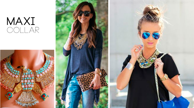 - Los maxi collares. Los maxi collares son increíblemente versátiles y ayudan a darle fuerza a cualquier vestimenta. Sin duda una tendencia que perdurará en el año que viene.
