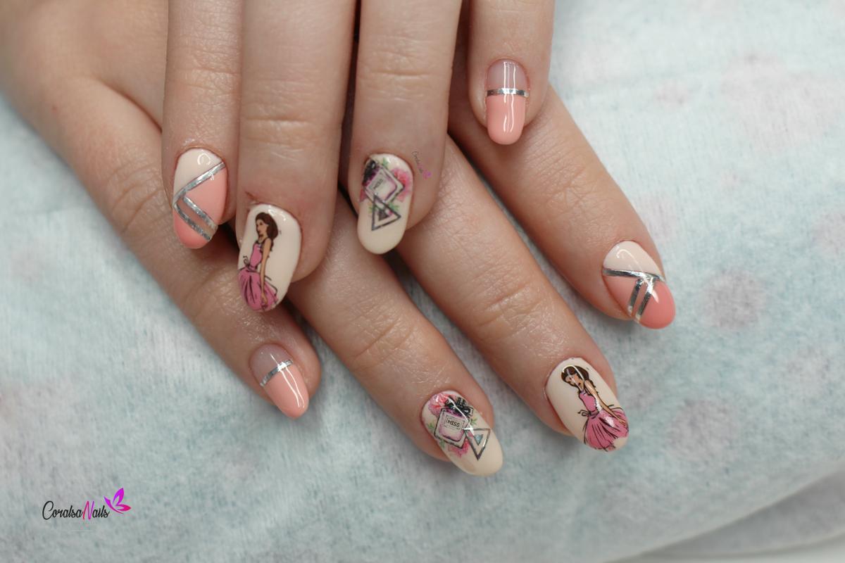 Suele ser un look con muchas flores, encajes,volantes, plumeti, tonos pastel, blancos, nude… Así que la manicura para esta temporada puede ir también en esa línea con un diseño geométrico con flores superpuestas o con uñas Jelly en tonos pastel. Además los tonos nude en la manicura también le van muy bien.