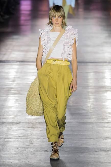 En cuanto a tejidos, formas y texturas hay para todos los gustos. Tejidos de red, ganchillo, crochet, encaje, rafia, ante, cuero (no lo intentéis en verano a menos que viváis en el norte XD), flecos, plumas, pedrería, volantes, lazos, plisados, troquelados, etc.