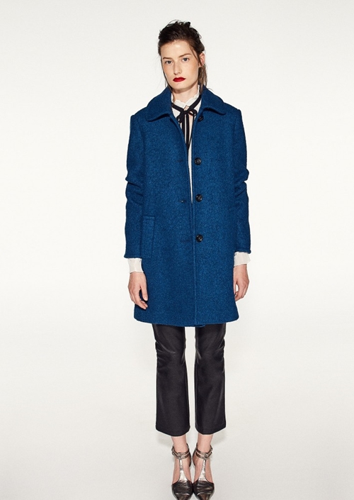 El abrigo de paño. En color azul noche, está compuesto de 50% de lana y 50% de poliéster. De Sfera.