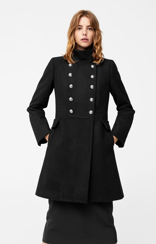 Abrigo estilo militar. Con doble botonadura y entallado. También en color khaki, De Mango.