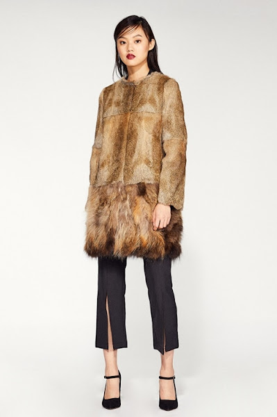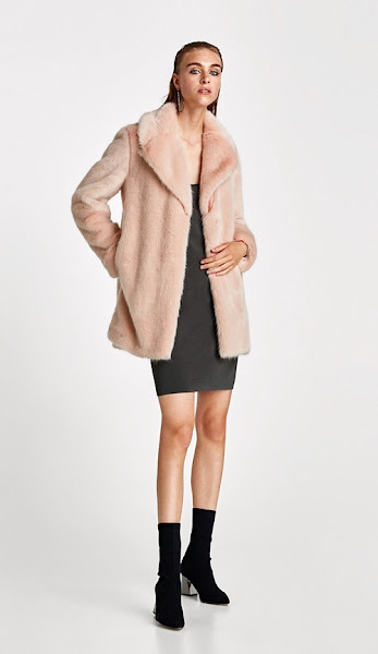 El abrigo de pelo. Siguen de moda los abrigos suavecitos y calentitos. Si además es de color rosa nude aún me parece más bonito. De Zara.