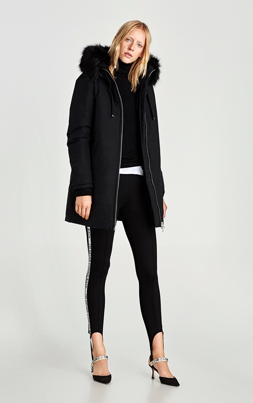 El parka, esa prenda tan versátil, sigue por supuesto estando de moda. En Zara la tenemos en khaki o en negro, repele el agua y lleva capucha desmontable.