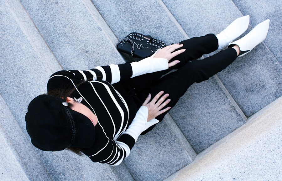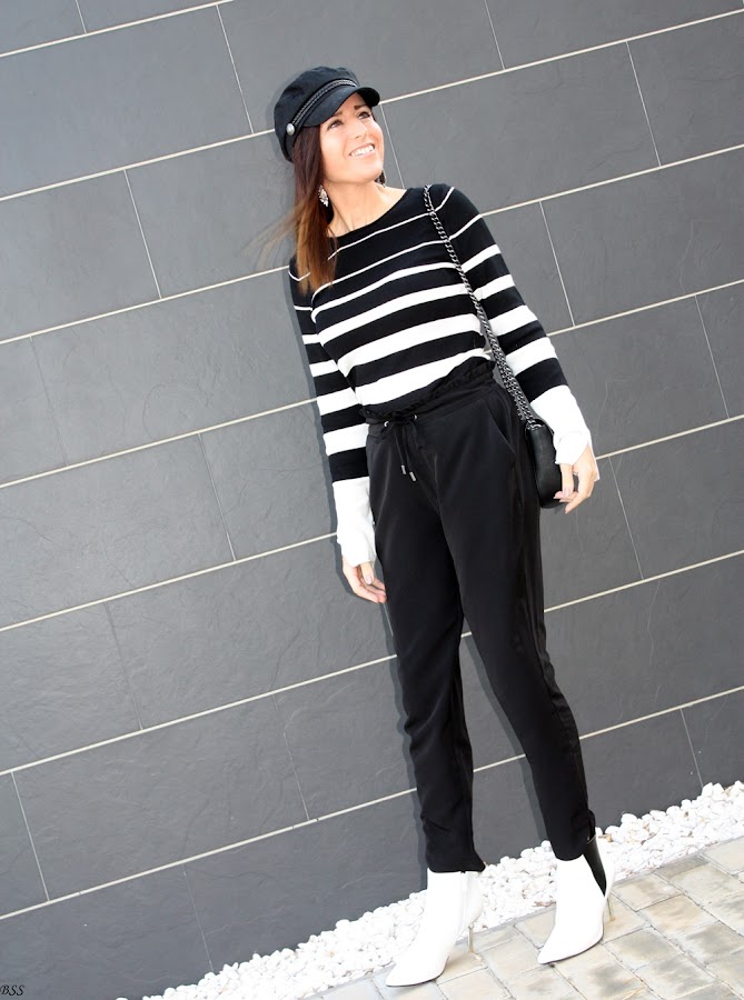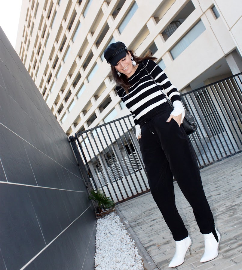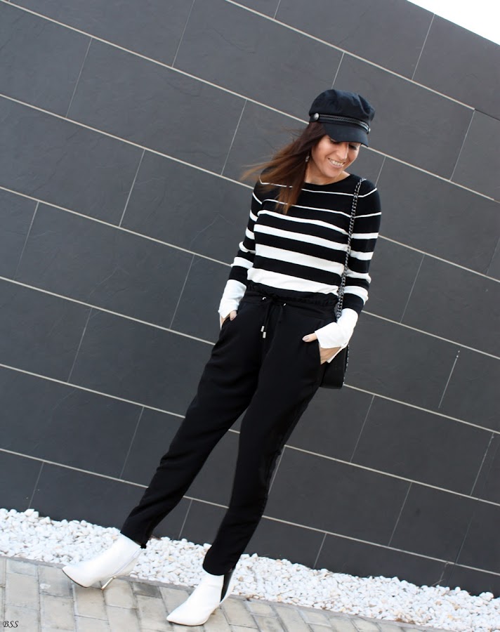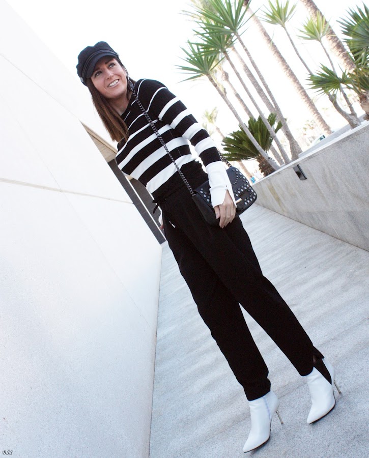 Fan absoluta de este print, hoy os traigo una propuesta sencilla con un jersey de rayas bicolor con apertura en las mangas, pantalón amplio y botines blancos (esos de amor/odio ) que vuelven con fuerza esta temporada.