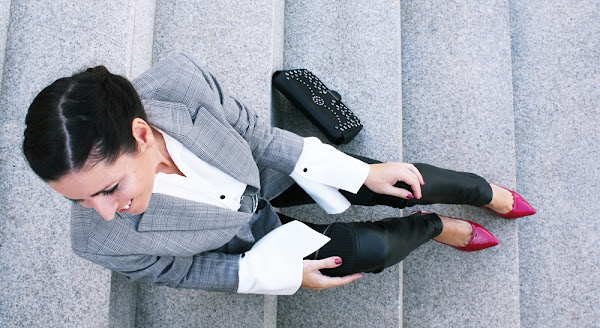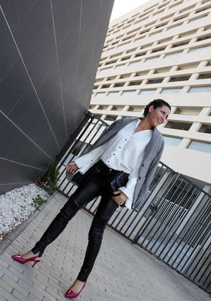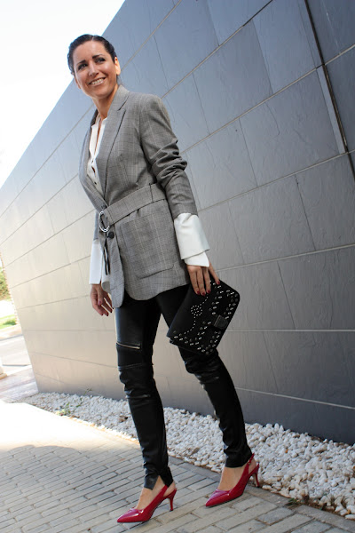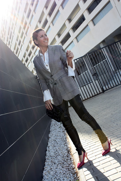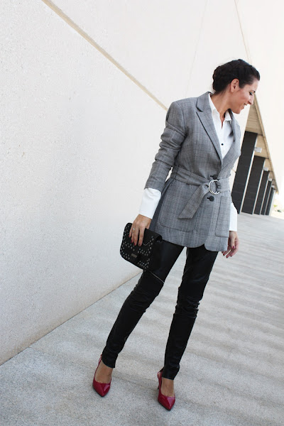 Clásica pero con ese toque casual que le aporta el cinturón, utilice la superposición haciendo que las mangas de esta camisa jugarán su papel y le di un toque más informal con un pantalón en polipiel.