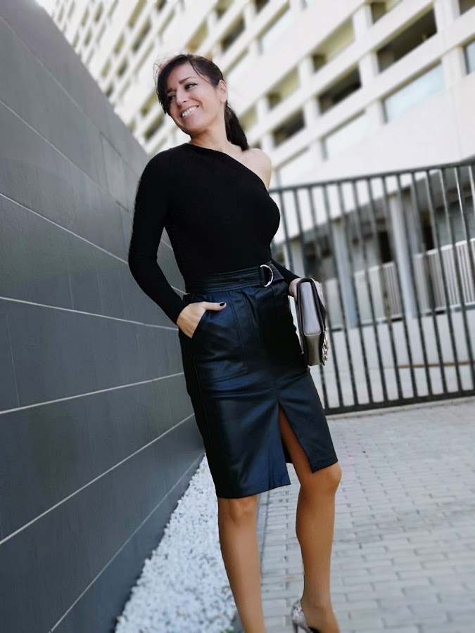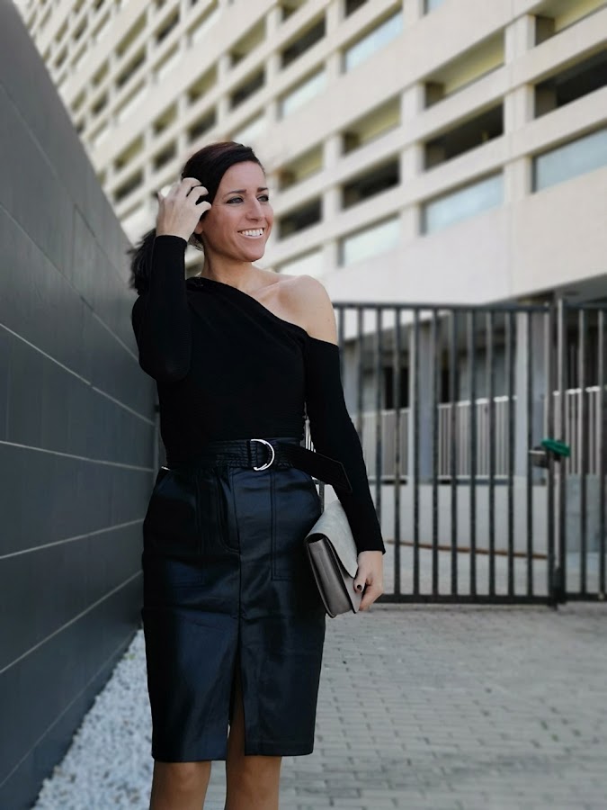 Hoy os la enseño en un total black con un top asimétrico de Zara que ya me habéis visto en alguna ocasión, stilettos print animal para romper lo monocromático del outfits y lista!!