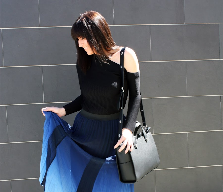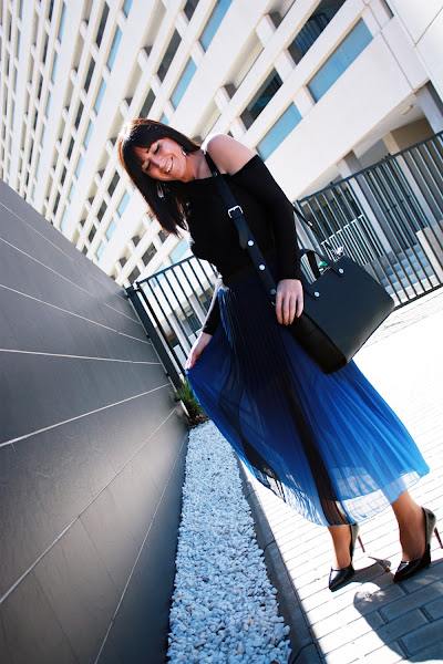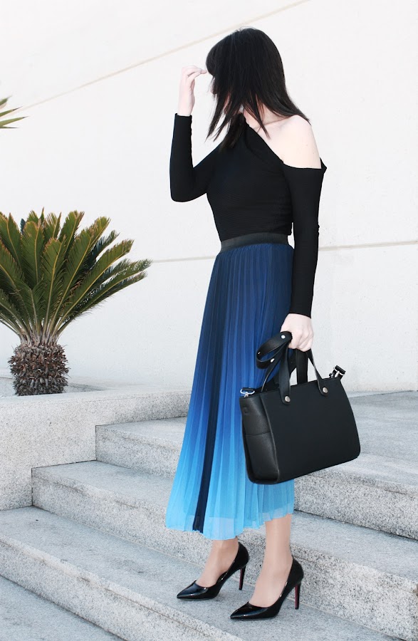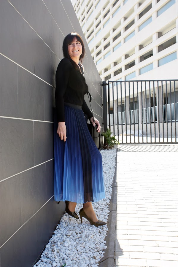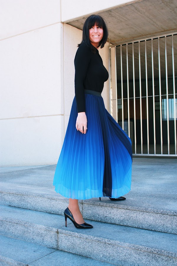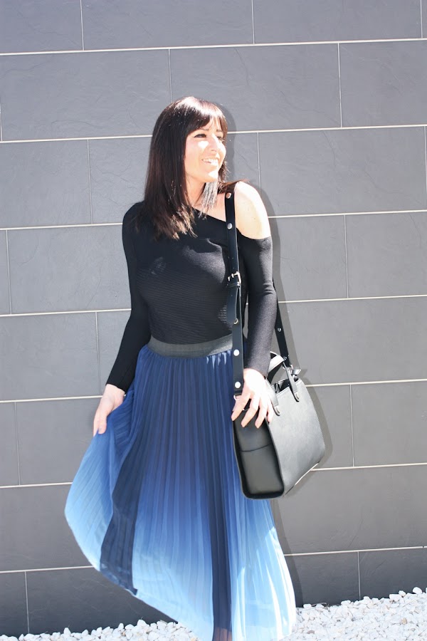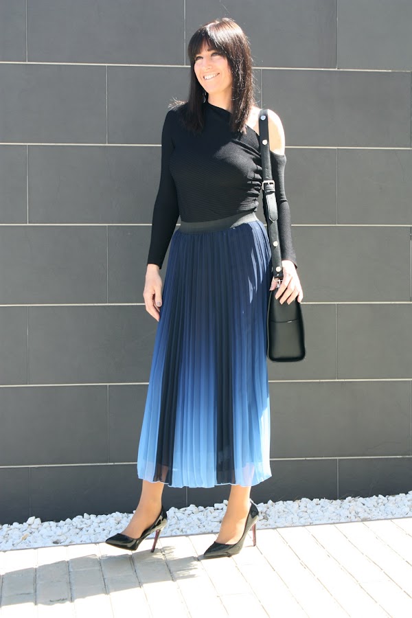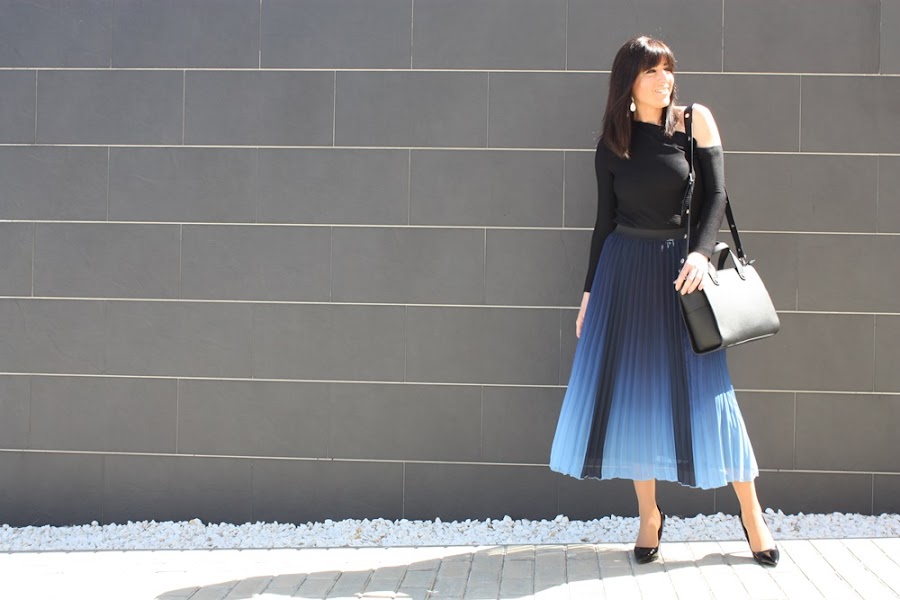 Con sudaderas y zapatillas, el combo estrella falda plisada y blazer, todas combinaciones con las que muchas de las mejores influencers nos inspiran. En mi caso ya me conocéis las tendencias sigo llevándolas a un estilo clásico con el que mejor me identifico así que mi propuesta de hoy con esta preciosa falda en tonos degradados de la nueva temporada de Stradivarius la he combinado con este top asimétrico de Zara.