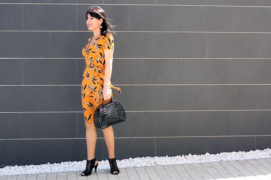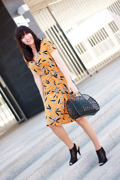 Las flores, hojas y estampados tropicales siguen siendo sinónimo de éxito y esta temporada los escaparates se llenan de color gracias a estos populares prints. Mi propuesta de hoy es un vestido en color mostaza con hojas formando flores de corte cruzado de la nueva temporada de Mango.