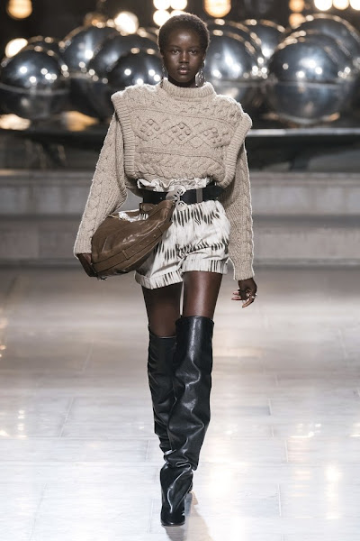 Una de las tendencias que llegaron hace temporadas y vuelve con fuerza es la de llevar un jersey más grande de lo que nos corresponde. Son los jerseys oversize y los podemos llevar sueltos o bien con un cinturón marcando cintura como podemos ver en la imagen del desfile de Alberta Ferretti.