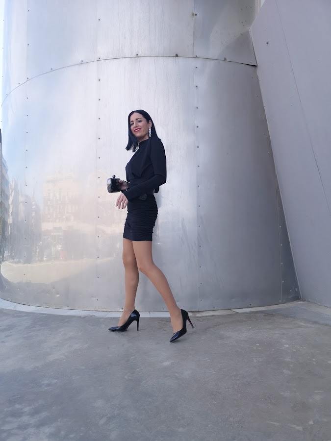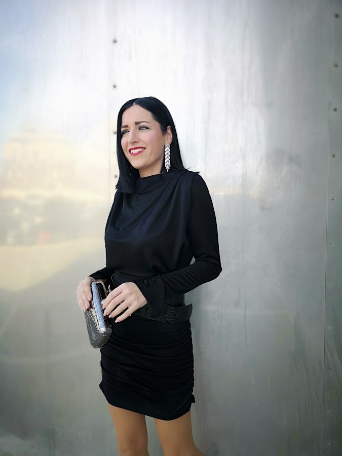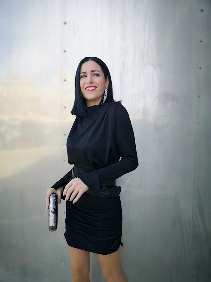 Esta es una de las muchas propuestas que nos ofrece, un precioso vestido en satén negro con un corte precioso que sienta fenomenal.