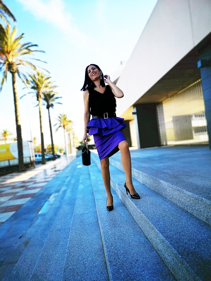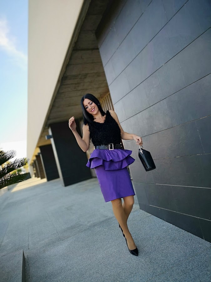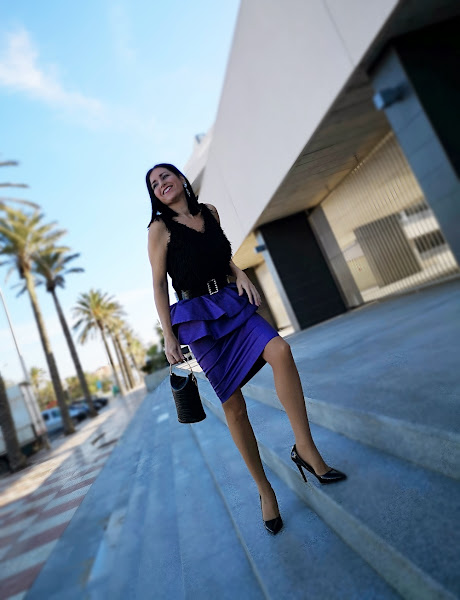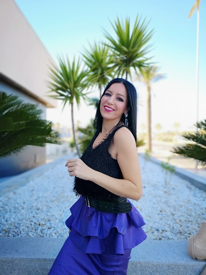 Hoy mi propuesta es sencilla pero muy resultona, ja,ja y es que un mini vestido con tejido brillante de este verano se ha convertido en una preciosa falda donde los volantes son la guinda del pastel.