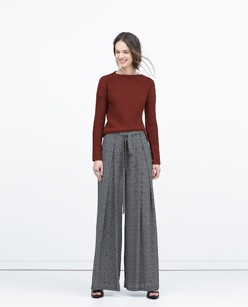 Pantalón estilo palazzo gris estampado minimalista de Zara.