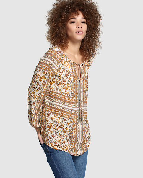 Blusa estampada de manga larga en tonos ocre. Fórmula Joven. El Corte Inglés.