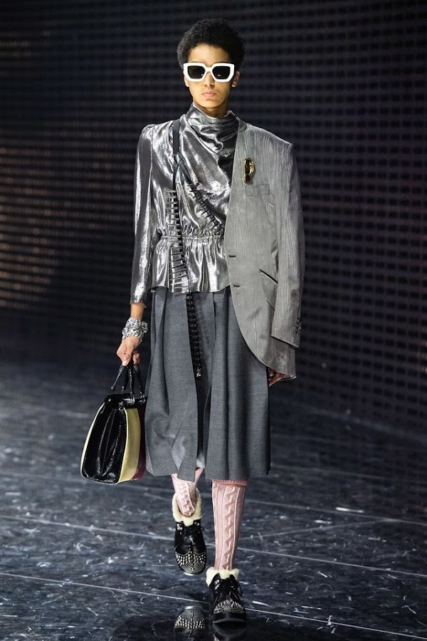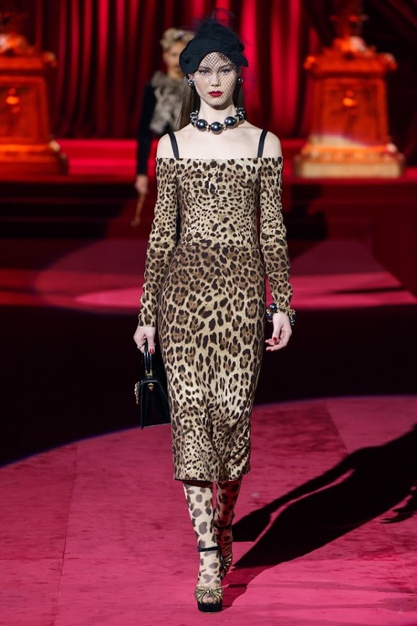 El print animal no nos abandona, pero evoluciona, y en vez de ser exclusivamente un estampado textil se amplía a diferentes texturas, como seda, pelo, lana y otros tejidos. En el desfile de Dolce & Gabanna podemos verlo también en las medias.