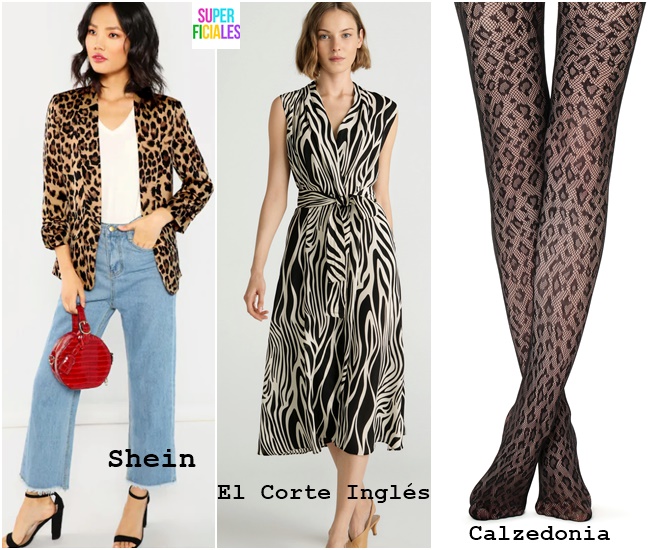Chaqueta print leopardo de Shein: 23,00 € - Vestido print cebra El Corte Inglés Woman: 79,99 € - Pantis de red de Calzedonia estampados: 9,95 €