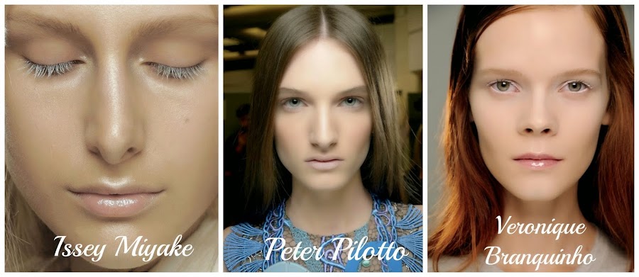 Tendencia basada en la iluminación de la piel de una manera sutil y natural usando productos en gel o crema. No existen contorneados. Incluso se busca aclarar las pestañas y cejas con máscaras o sombras claras, para un total look aún más espiritual.