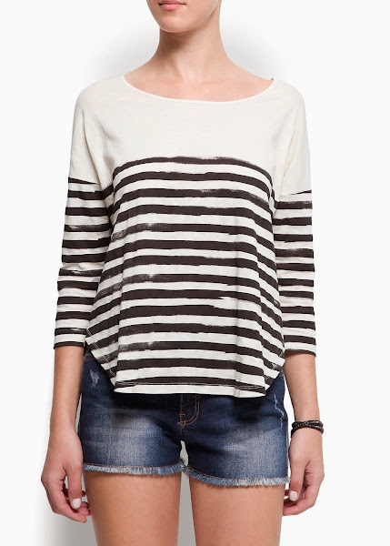 Camiseta rayas marineras y cuello redondo Mango