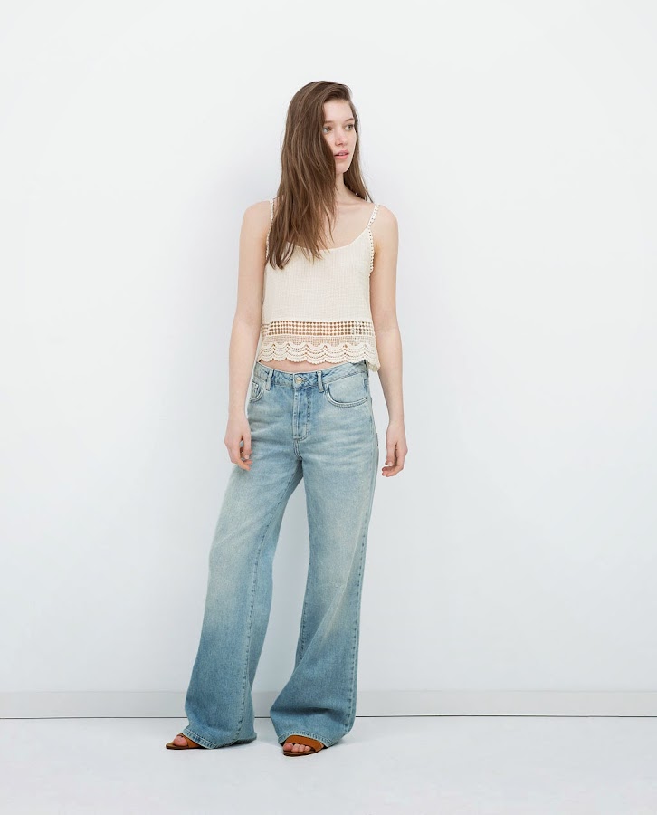En tercer lugar, los PANTALONES DENIM ACAMPANADOS. Están en el top 1 en todas las tiendas. Pensaba que no, pero ha venido pisando fuerte. Ya vemos a grandes blogueras utilizándolo y se está haciendo hueco entre nosotros. A mí personalmente, no me gusta nada. Pero como os dije antes, este verano todo lo sesentero está volviendo.