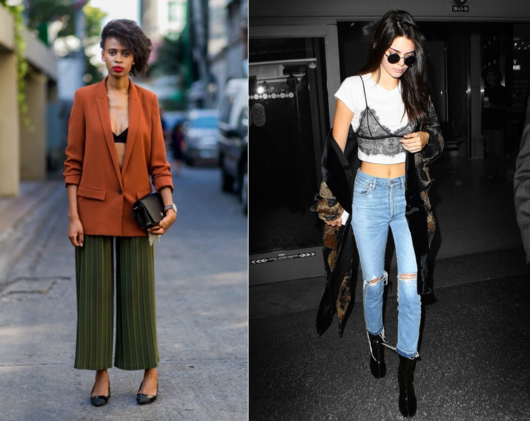 1. Visible underwear. The bralettes return another season to be seen or hinted through half-open tops, under a semi-transparent top or over a basic white shirt.
