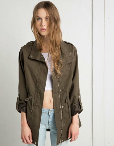 Parka algodón color caqui de Bershka