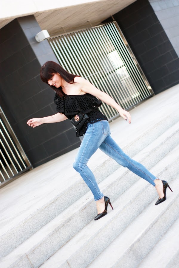 Hoy llevo un top troquelado super bonito de River Island con un corte precioso al que no he querido quitar protagonismo, así que solo han bastado unos jeans y unos stilletos para minimizar el look.