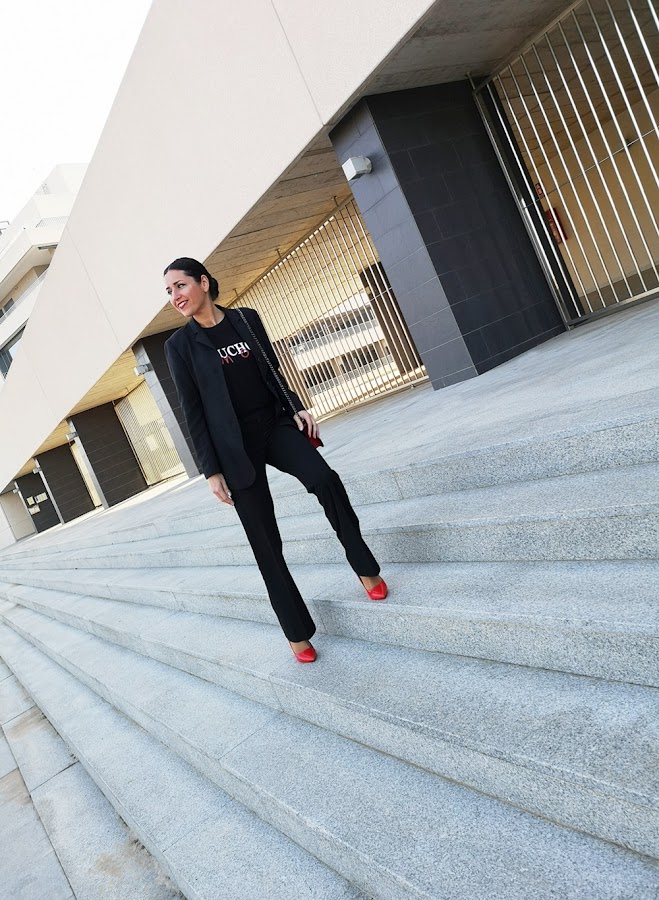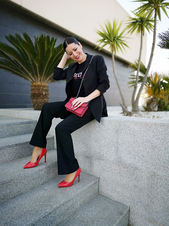 Hoy mi propuesta es como ya muchas sabéis en mi color favorito, el negro, siempre elegante y muy versátil, nada como acompañarlo con unos bonitos zapatos rojos.