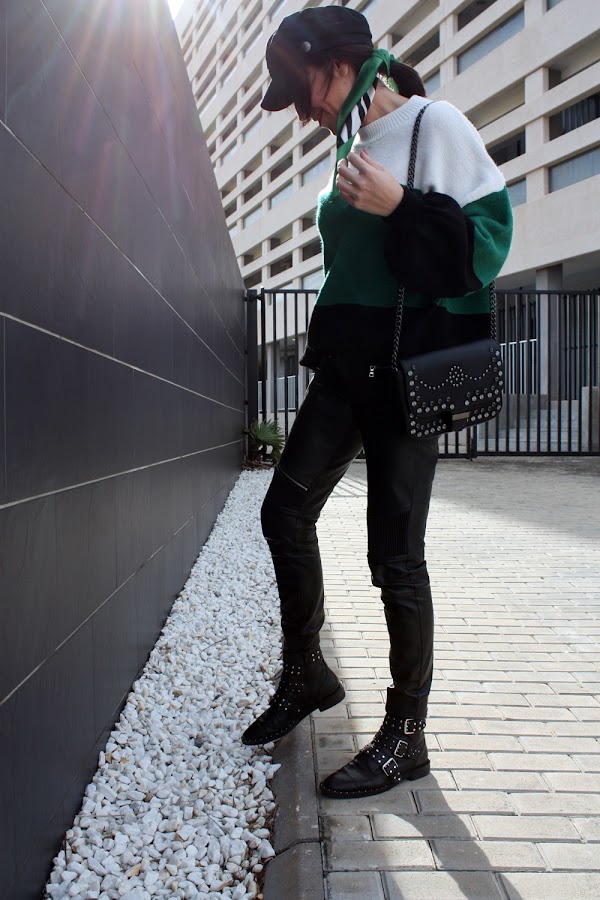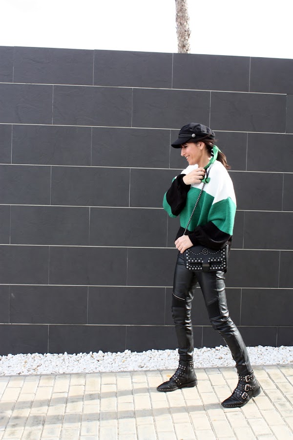 A mi personalmente me encanta y me parece de lo más favorecedor, así que hoy os dejo mi propuesta con un precioso y calentito jersey tricolor donde el color verde resalta especialmente.