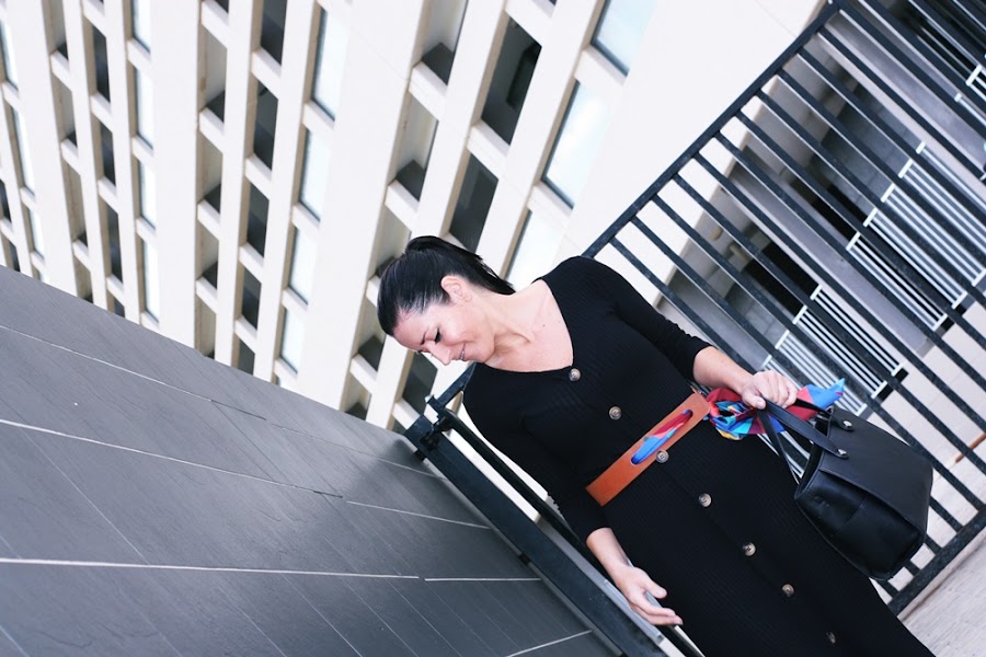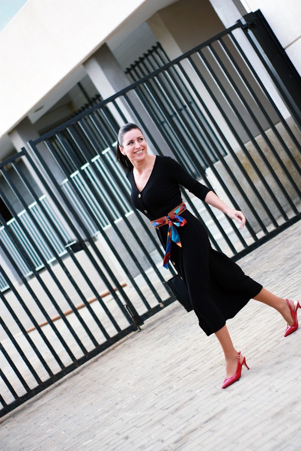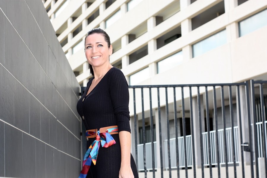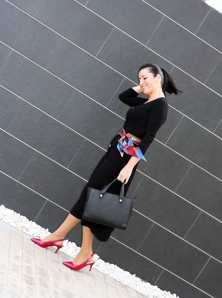 Hoy los complementos de mi propuesta juegan un papel muy importante en el outfit haciendo que un look clásico y sencillo cree un volumen diferente con un cinturón-pañuelo precioso.