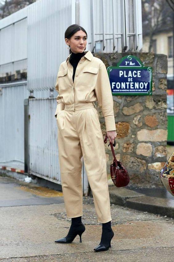 Hace años que dejamos atrás los mini vestidos embarrados al cuerpo y no saben la tranquilidad que me da. En 2020 vamos a ver muchas propuestas con vestidos oversize, no importa si son largos o cortos el punto es que sean extra grandes. Esté tipo de vestidos logran un look romántico así que puedes darle un toque urbano combinándolos con tenis o incluso botas militares.MONO DE TRABAJO