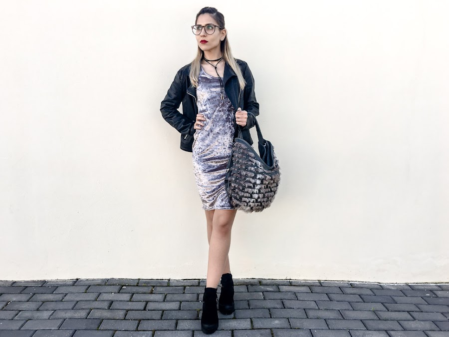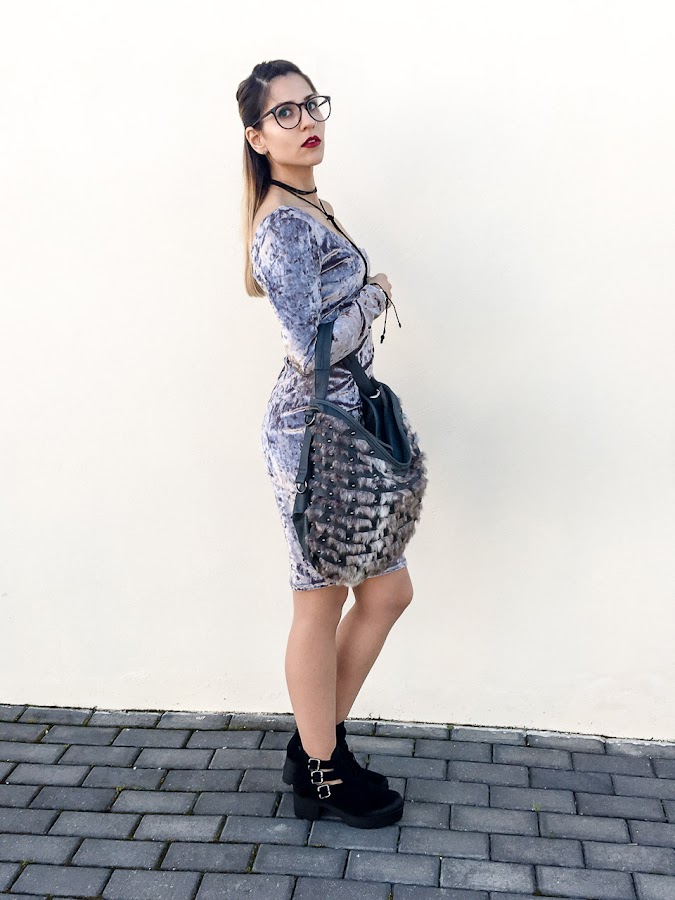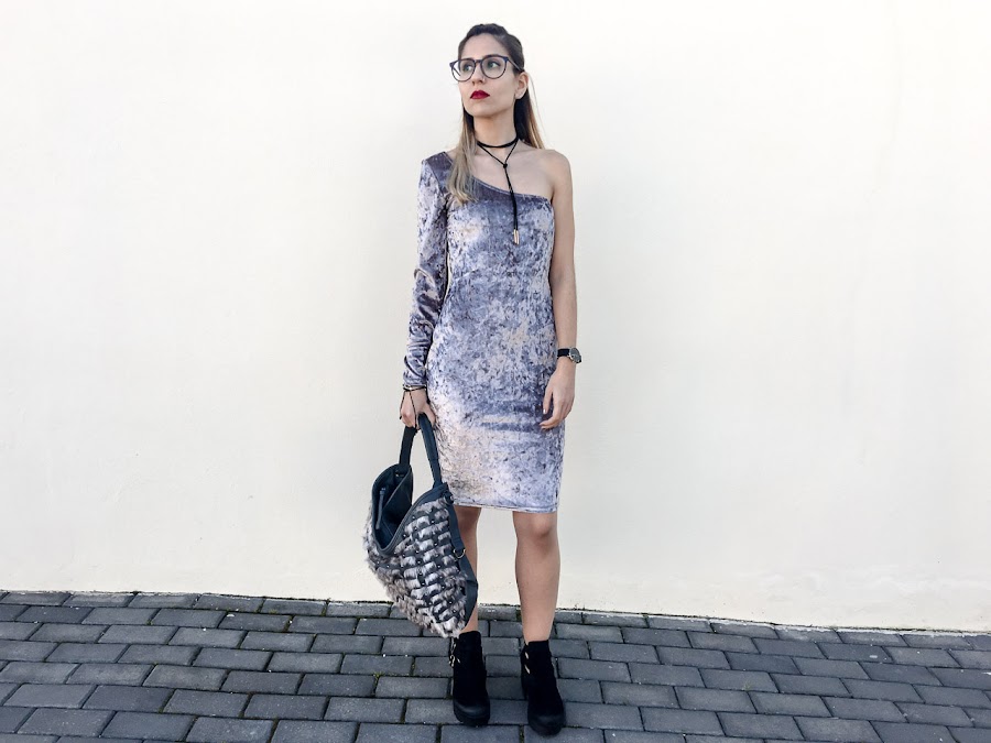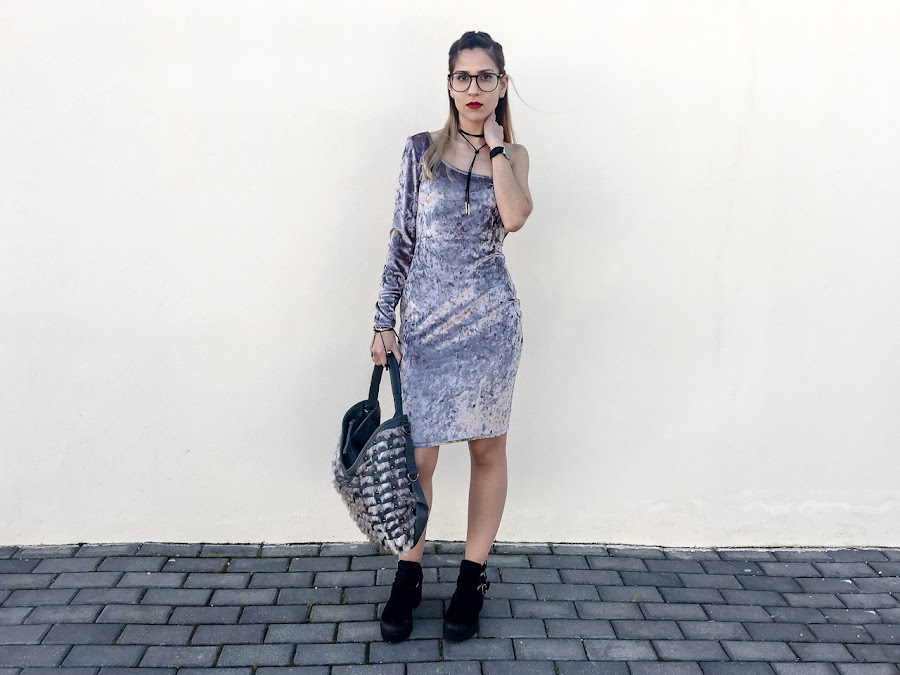 The protagonist of today is a midi velvet dress, gray and with an asymmetrical neckline with only one sleeve. It is super comfortable and fits like a glove!