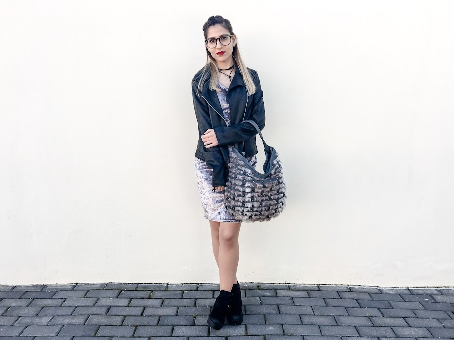 Otro de los protagonistas del look de hoy es un bolso muy especial de NATURALMENTE, gris oscuro con detalles de pelito en la parte delantera.