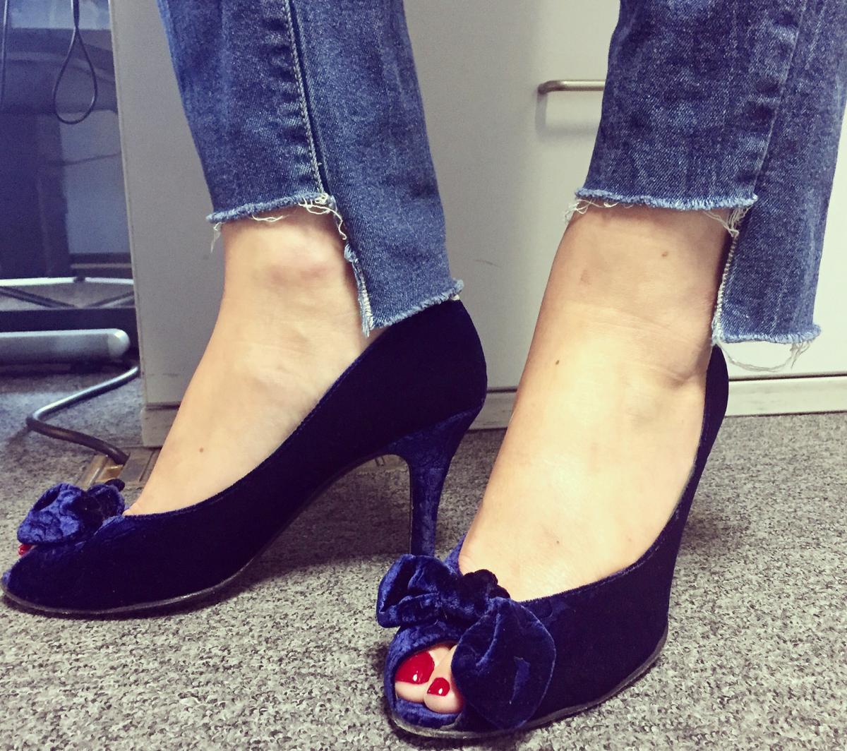 O dejo también con unas fotos de unos zapatos de velvet azul que no pueden ser más bonitos, creo que estaréis de acuerdo conmigo… los que me seguís en Instagram ya habéis visto alguna fotillo con ellos, pero es que son taaannn bonitossssssss que tenían que salir por Los Zapatitos de las Maripositas…