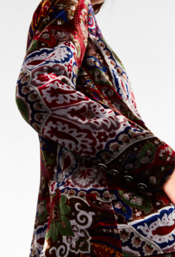 El terciopelo me parece un tejido elegante, sexy y muy ponible. Tengo alguna que otra blazer de terciopelo y os aseguro que dan mucho juego, con un vestido lencero queda genial y con unos simples vaqueros, pues qué os voy a contar… Genial!!
