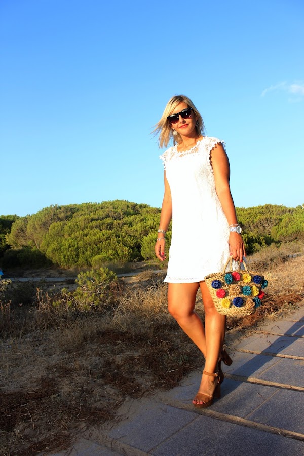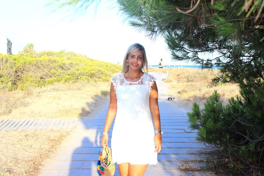In the outfit of the day, I wear a white boho dress that its one of my favorite. I wear it with my camel sandals that I showed you a lot of times in the blog, but they are so comfy and fit well with everything, then they have converted in my favorite shoes during this summer. Finally, I put my bag with pompons that I think it fits perfect with the outfit.