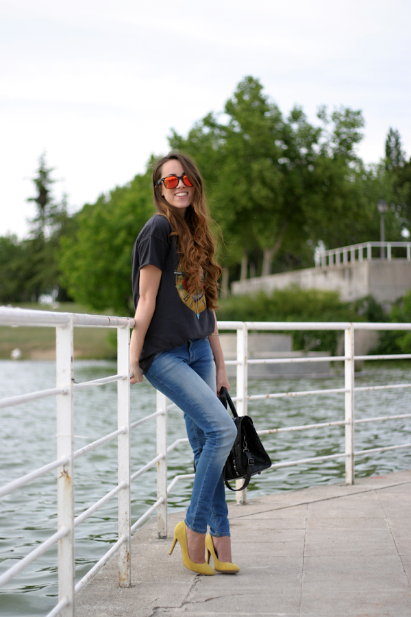 I"m wearing: T-shirt/Camiseta - Pimkie(SALES13-14), Heels/Tacones - Zara(SS14)HERE/AQUI, Jeans - Zara(Old), Bag/Bolso - Oasap(FW13-14), Sunnies/Gafas de sol - NYS Collection(Old).