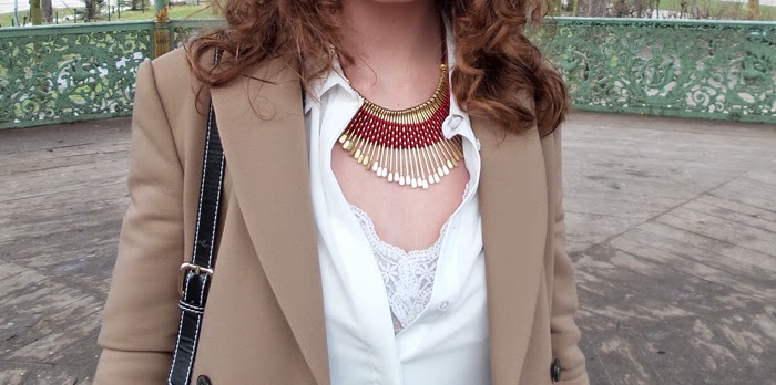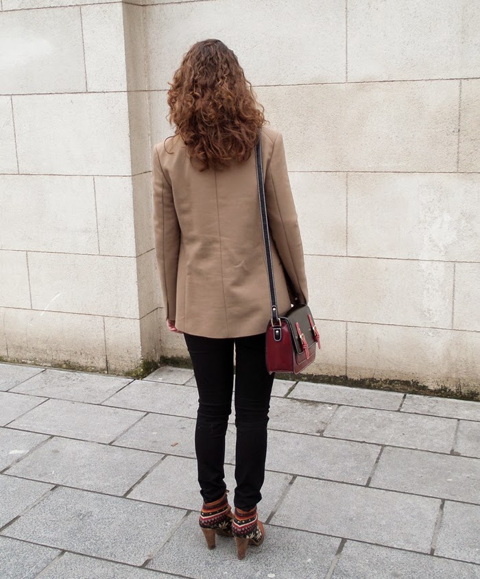 Los colores predominantes en el look son camel y negro salpicados con toques burdeos,últimamente soy bastante fan de esta mezcla de colores.