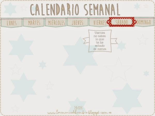 Qué mejor que organizarse bien las semanas de este año de la mano de Zazu y Nusca del blog Hermanas de Hambre con este pdf que os regalan en su post CALENDARIO SEMANAL GRATIS