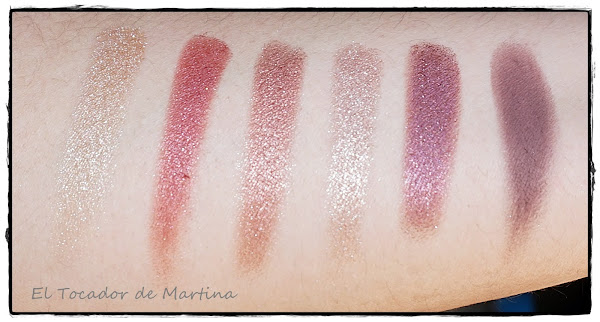 Como podéis comprobar, la pigmentación de estas sombras es bastante buena y se trabajan de forma óptima, se difuminan bien sin mezclarse demasiado entre ellas, la duración en el párpado (siempre con prebase) es excelente, y al no ser polvorientas, no tienen apenas caída cuando las aplicamos.