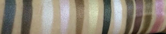 Casi todos los tonos de esta paleta son satinados y con chispitas , marrones con chispitas doradas, negro con chispas rojas y doradas , realmente son unas sombras muy especiales para maquillajes de fiestas . La textura es muy sedosa, niguna sombra es polvorienta , con la brocha se trabajan bien porque los polvos de las sombras son muy ligeros y se difuminan bien . Algunas sombras pueden utilizarse perfectamente como iluminadores porque dejan un acabado de luz muy natural y bonito . La paleta no incluye ningún tono mate , así que si preferís este tipo de tonos esta paleta probablemente no sea de vuestras favoritas .
