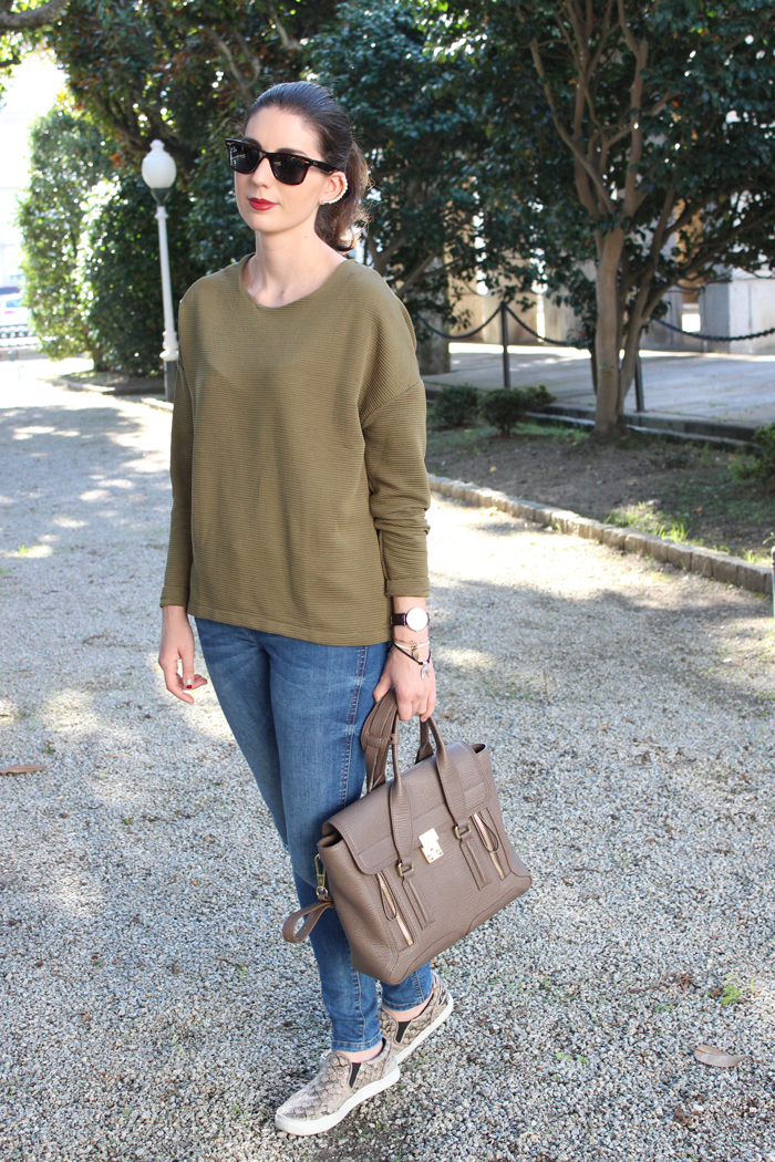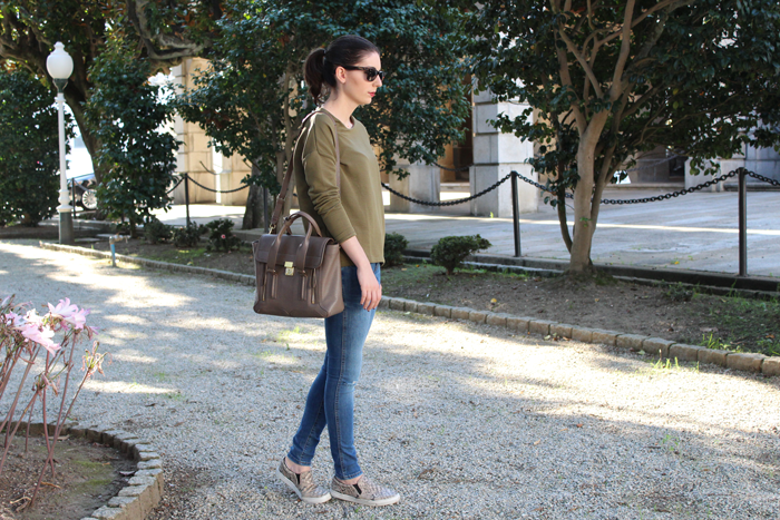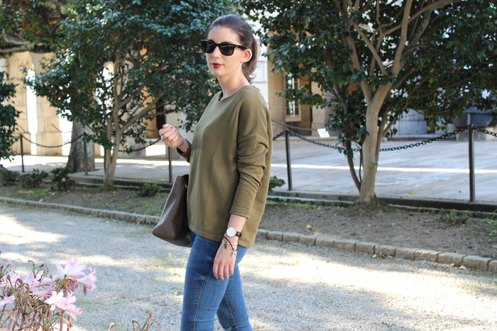 Y el look ya veis, modo otoño on, con este verde que parece que va a ser el color de la temporada.