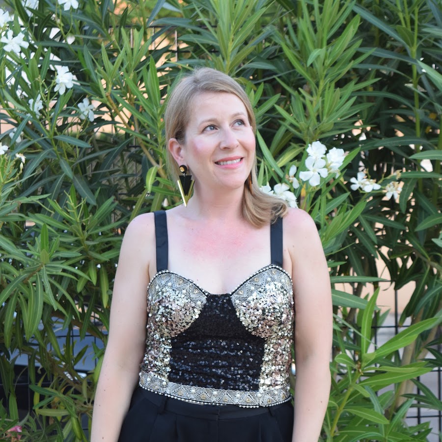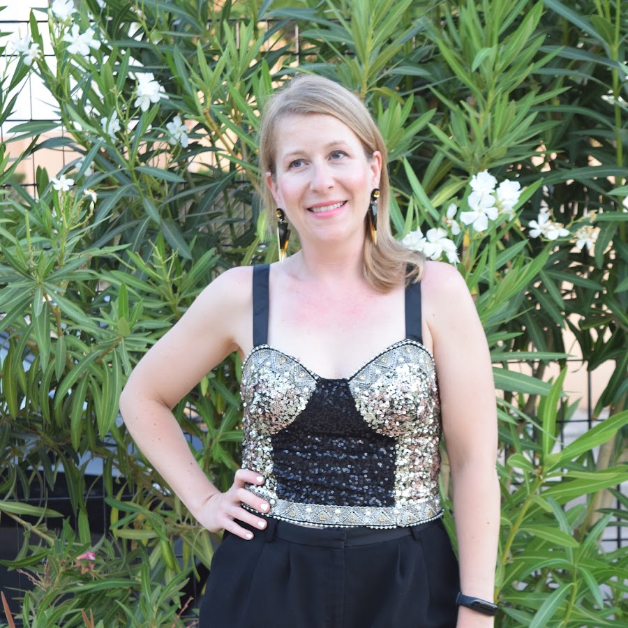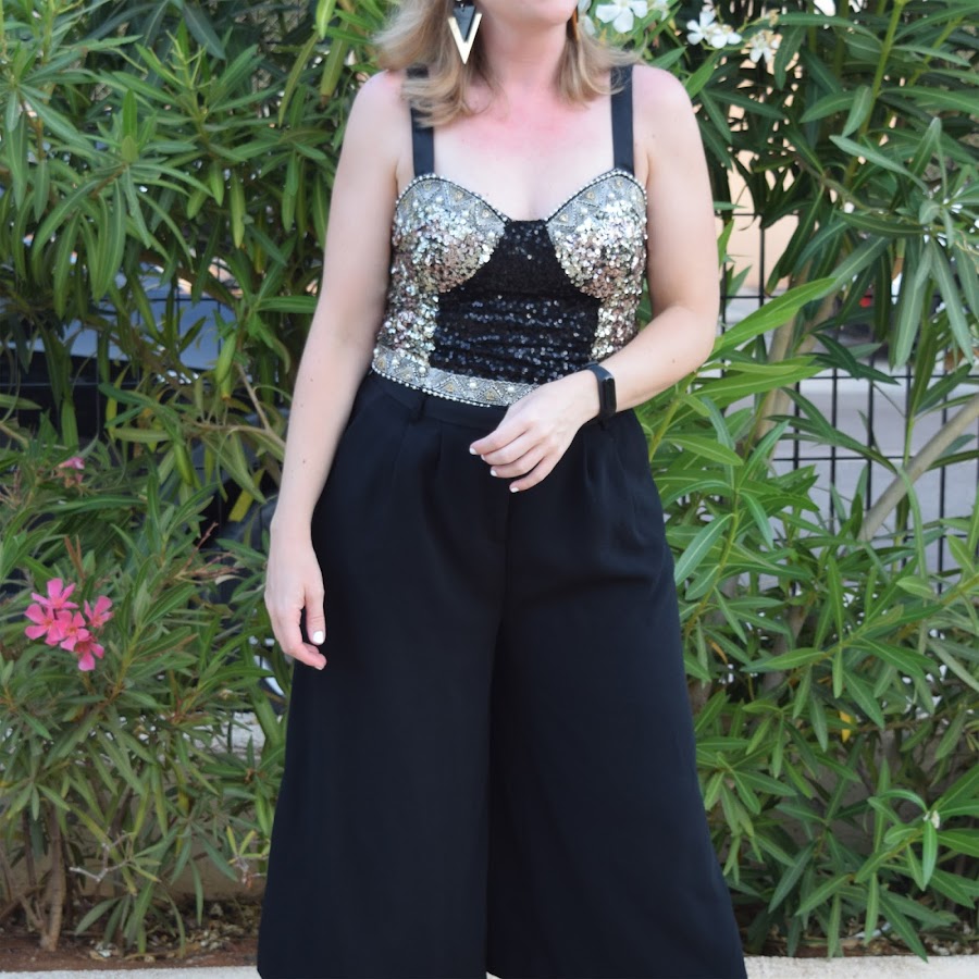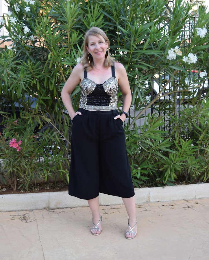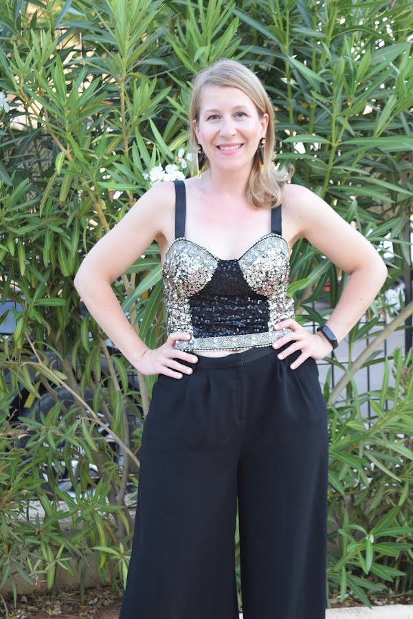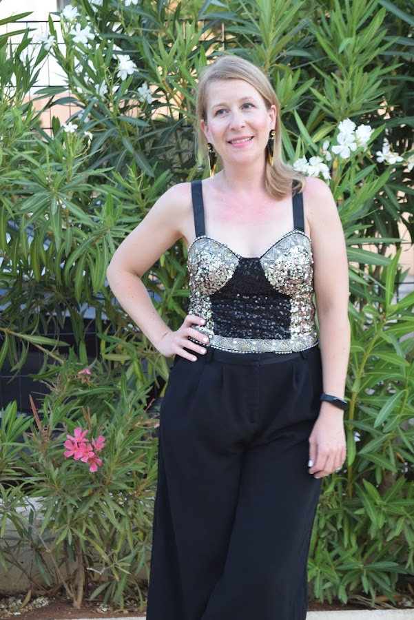 Y así estamos, con este top tan bonito de lentejuelas y tejido elástico, que lo mismo puedes utilizar para salir una noche, como para tomar unas cañas a mediodía combinado con un vaquero. En mi caso, eso si, bien subido y de tiro alto, que por otro lado es lo que ahora se lleva.