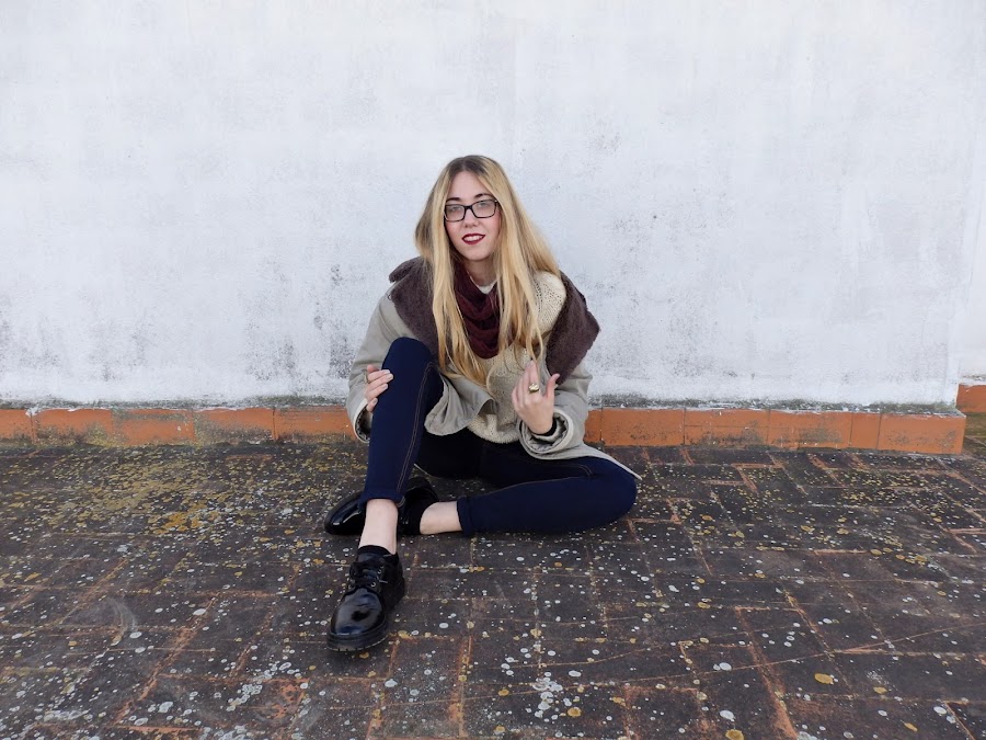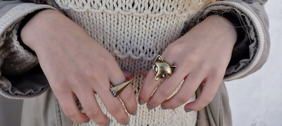 De calzado llevo los blucher que ya habéis visto en otros posts, y que junto con el abrigo le dan un toque masculino al conjunto. Como accesorios simplemente me he decantado por dos anillos en tono oro viejo con pequeños brillantitos.