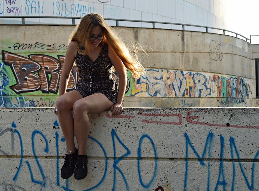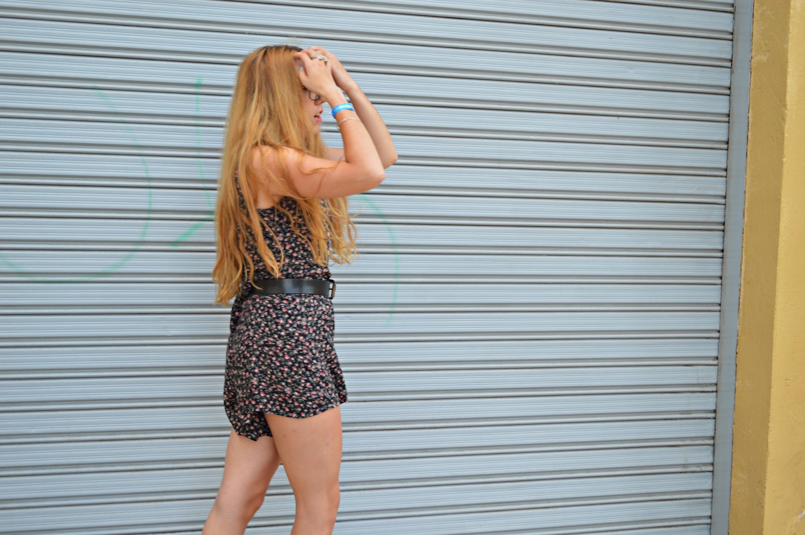 En este caso yo he elegido un mono de tela vaporosa y con estampado floral, al que le he añadido un cinturón de cuero para que marque la figura. En cuanto a calzado llevo unas zapatillas de plataforma que le aportan un toque informal.
