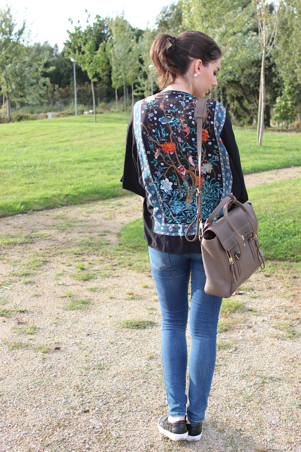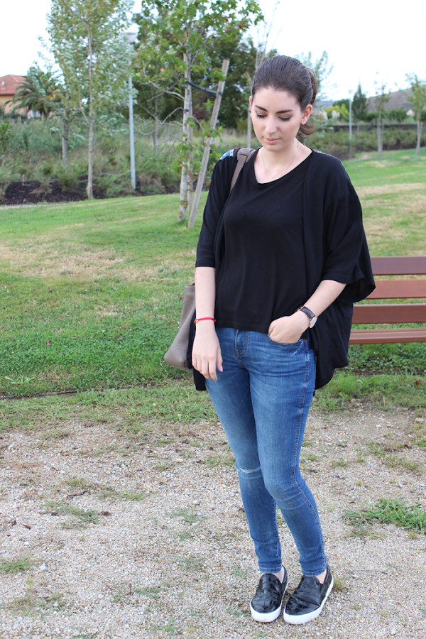 El kimono me parece una prenda perfecta para esos días en que no sabes muy bien que ponerte porque no hace ni mucho frío, ni mucho calor pero apetece ir un poco más vestido. Este es del año pasado pero la verdad es que no he encontrado uno este año que me gustase más que este porque me encanta que sea tan sencillo por delante y en la espalda sea estampado.