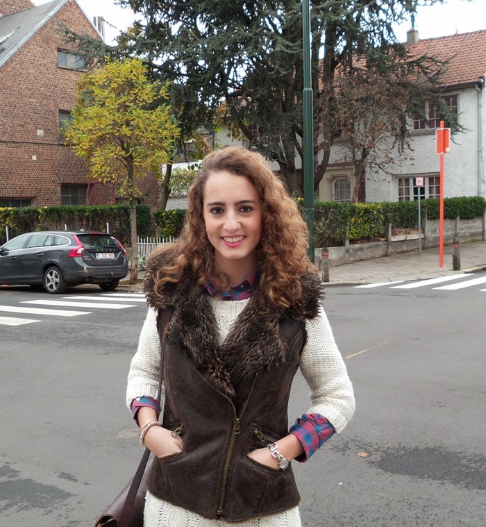 Hi guys!How is the week going? Today I show you a look must have for winter; comfortable, cozy and fashionable at the same time. As key item of the outfit a knitted off-white dress which because of the color you can combine it in every possible way. In this occasion I chose to mix it with a red and blue check shirt and brown accessorize. The sleeveless coat I like it specially because of the aviator look, the boots and the bag you have already seen them in different occasions like here or here, they have a special place on my wardrobe for the moment.