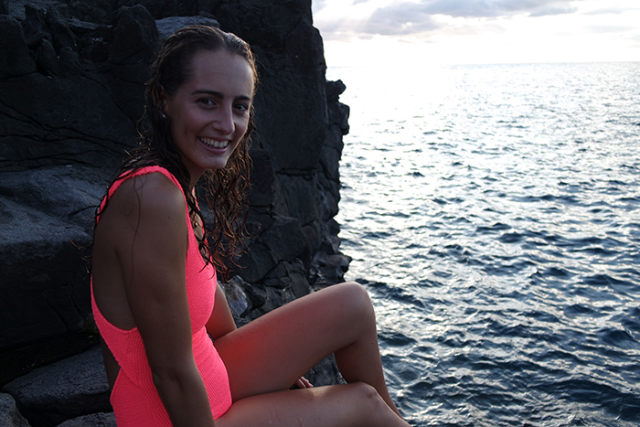 Este bañador con su textura y color me conquistó. La espalda como un bañador de natación es muy practica sobretodo cuando el plan no es estar tirada en la arena tomando el sol, como en el otro día que pasamos la tarde saltando desde el faro y buceando.