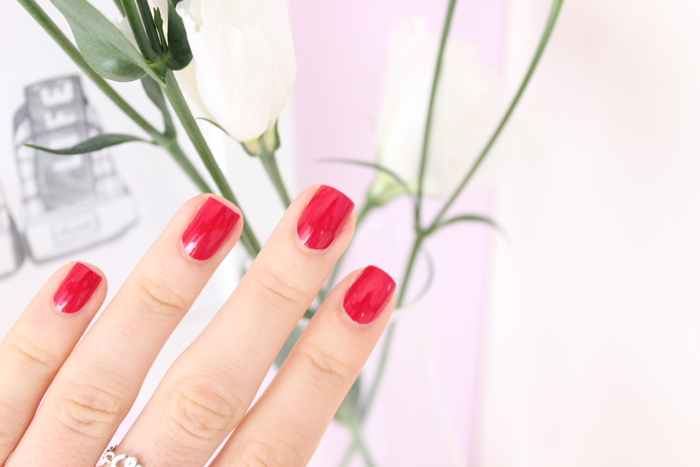 El color es un rojo precioso, cubre genial y si, brilla más que la línea normal, en estas fotos podéis verlo está sin top coat. En cuanto a la duración genial, hoy hace una semana y está como el primer día.
